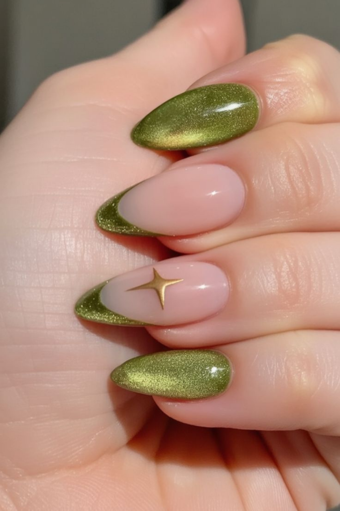 While cat-eye nails started with „galaxy” vibes (purples and blues), the current trend has shifted toward „Earth-core” aesthetics. Think deep emeralds, mossy olives, and chocolate browns. These colors feel grounded but retain that supernatural shimmer that makes people grab your hand to get a closer look.