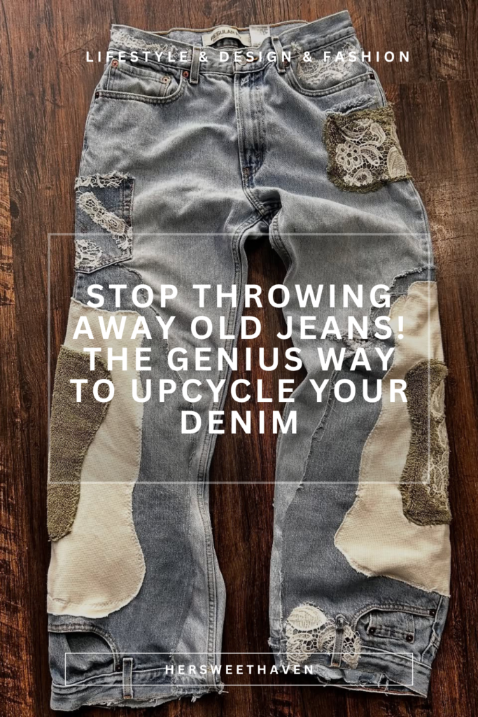 If you’ve got a pair of jeans that are ripped, stained, or just boring, this project is for you. Instead of tossing them, patch the worn areas with a mix of lace, canvas, and contrasting fabric scraps. The result looks like something you’d pay a premium for at a vintage shop.