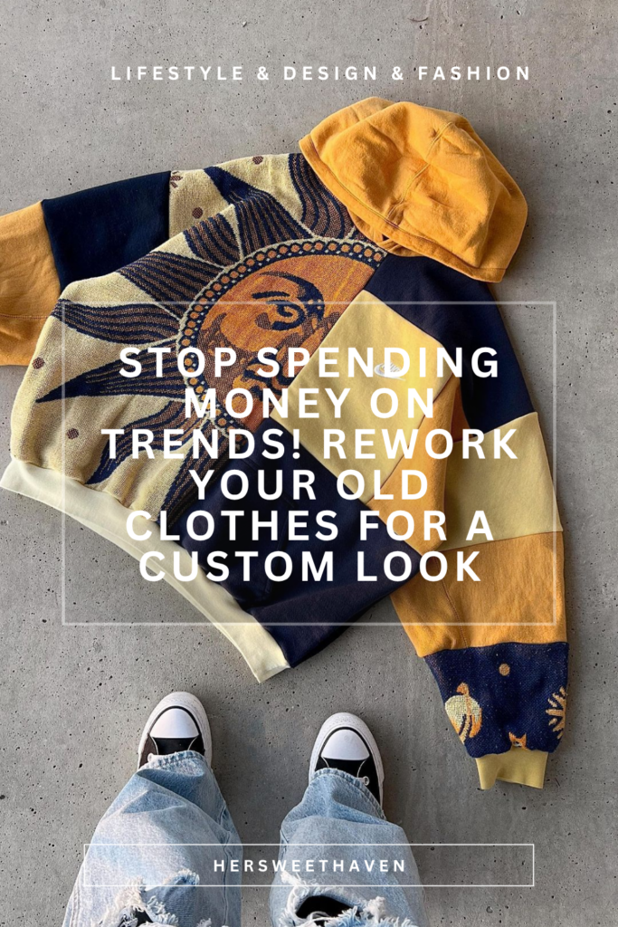 This is where upcycled clothing ideas start to feel like actual fashion design. The combination of a structured hoodie silhouette with an unexpected textile (think celestial prints, abstract art, or bold florals) creates something that looks like a limited-edition drop.