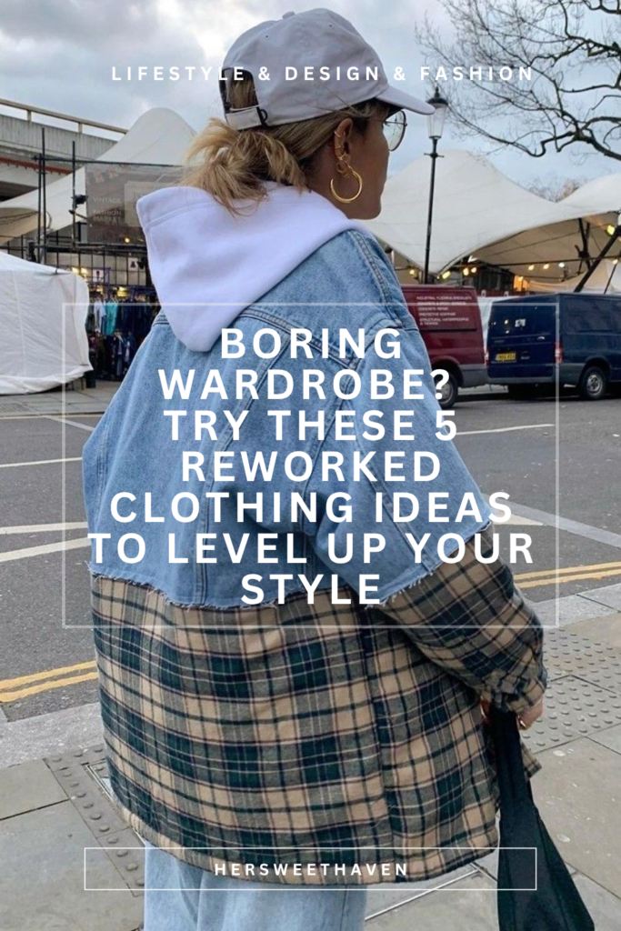 This project splits a jacket down the middle (figuratively or literally) between denim and plaid. The top half keeps the structure of a denim jacket while the bottom half uses a chunky plaid. Add a hoodie lining or panel underneath, and you’ve got a layered look with serious street style energy.