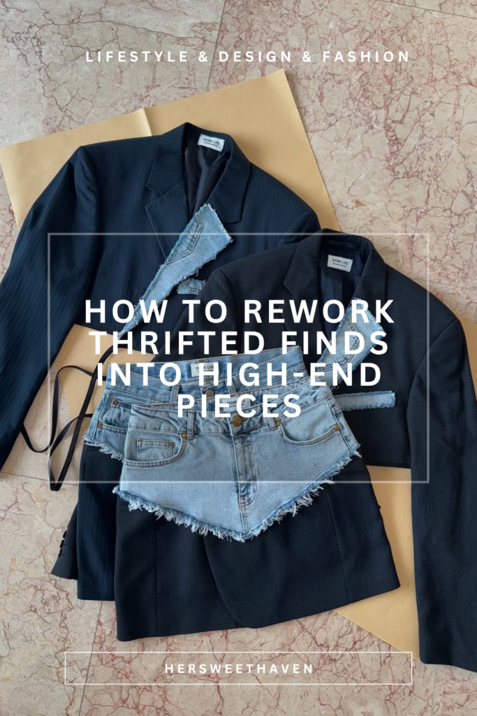 Thrift stores are full of blazers. Most of them are oversized, slightly outdated, and priced under $10. That makes them the perfect base for a rework project. Pair a dark blazer with raw-hem denim shorts stitched directly onto the waistline, or crop a blazer and pair it with a contrasting denim accessory piece.
