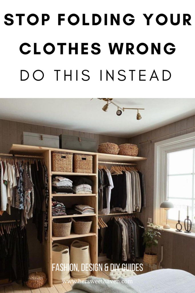 For items that don’t need to be hung on a rod, like chunky knit sweaters, denim jeans, or stretchy workout gear, use sturdy fabric baskets or woven bins on the upper shelves. This keeps the visual noise to an absolute minimum and prevents tall stacks of clothes from toppling over onto your head. I highly recommend using the file-folding method for your drawers. Instead of stacking t-shirts on top of each other, fold them into small rectangles and stand them upright. Use wooden drawer dividers for your socks and undergarments. Seeing everything neatly separated in its own designated zone rather than tangled in a giant knot brings a surprising amount of daily peace to my mornings.